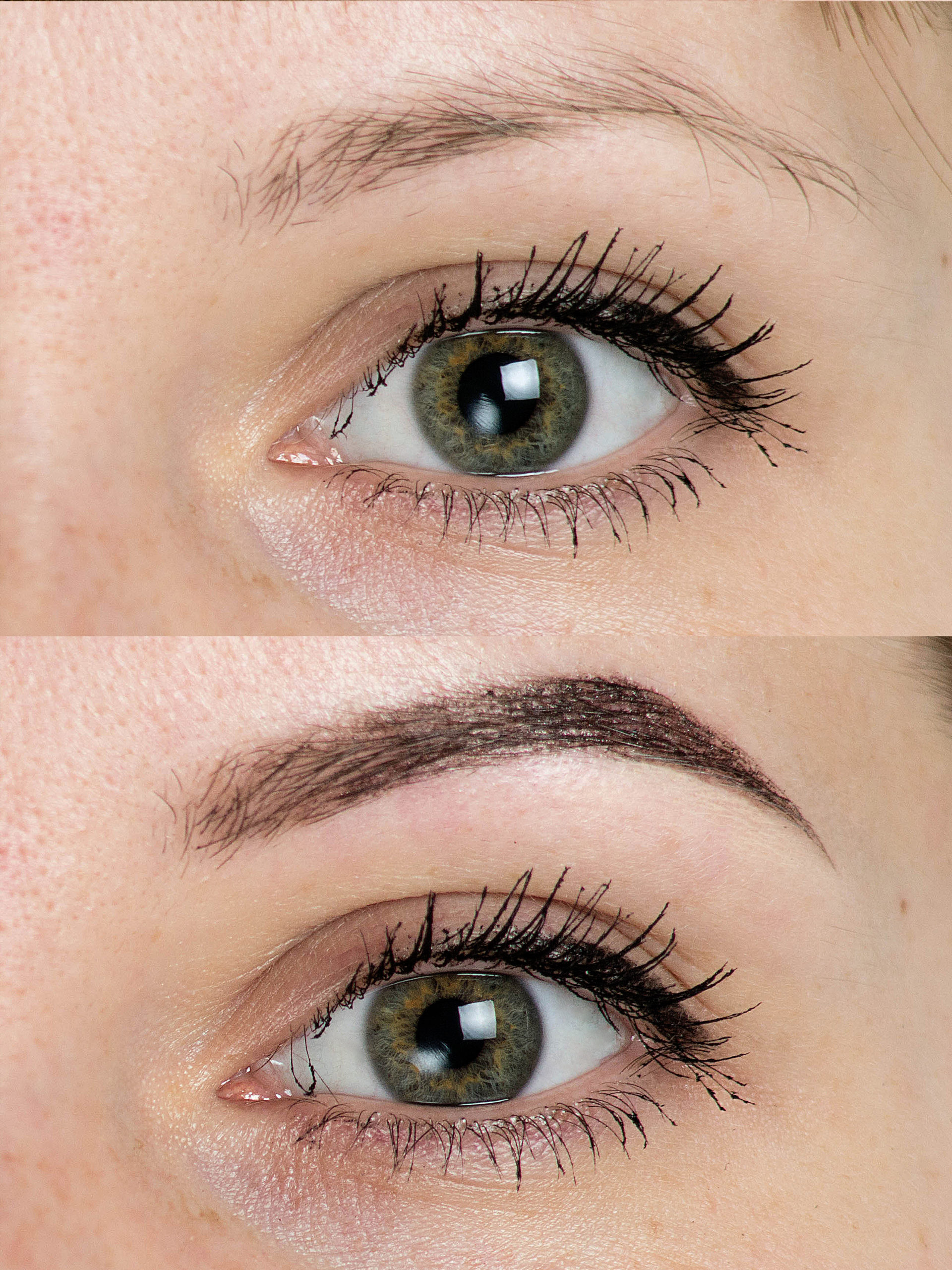 Augenbrauen werden mit Permanent Make up in Form und Farbe klar definiert.
